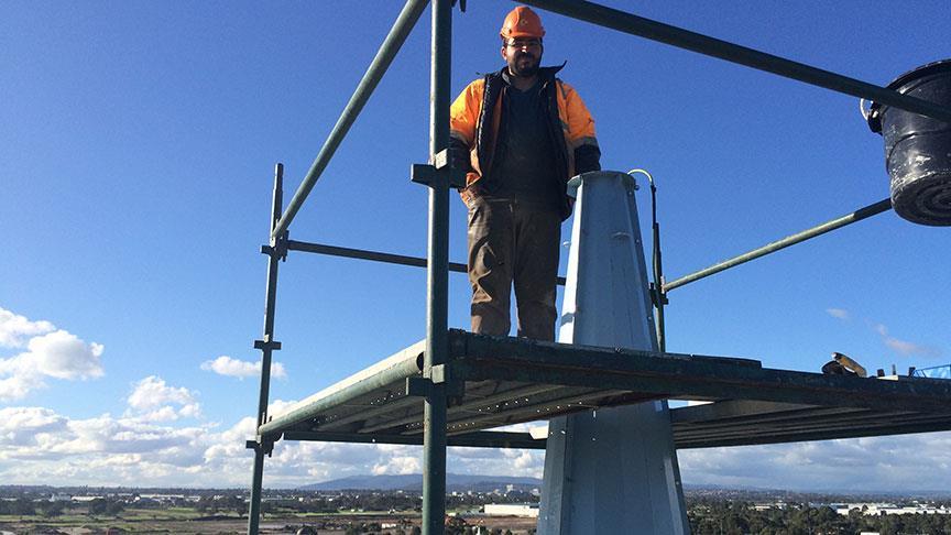 Yükseklik korkusu olanların yapamayacağı minare ustalığı mesleğini sürdüren 42 yaşındaki Ali Kuranel, Avustralya ve Kırgızistan'da minare yapıyor.