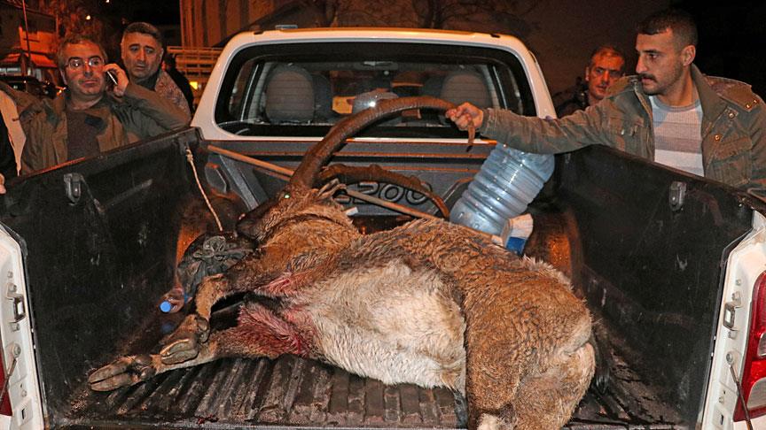 Görevliler, yaban keçisini kamyonet kasasına yükleyerek kent merkezine getirdi.