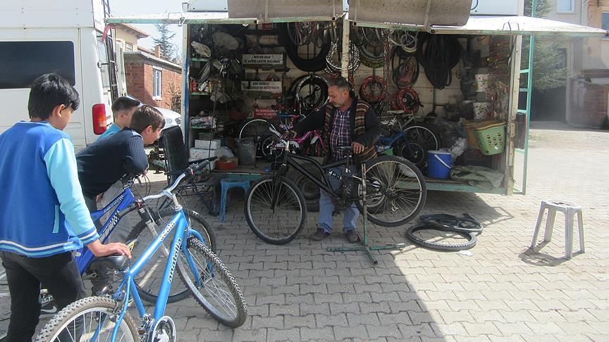 İlçede 30 yıldır bisiklet tamirciliği yapan İlhan, AA muhabirine yaptığı açıklamada, işlerinin durgunluğu üzerine köyler ve beldelerde yaşayan vatandaşlara hizmet götürme fikriyle yola çıktığını söyledi.