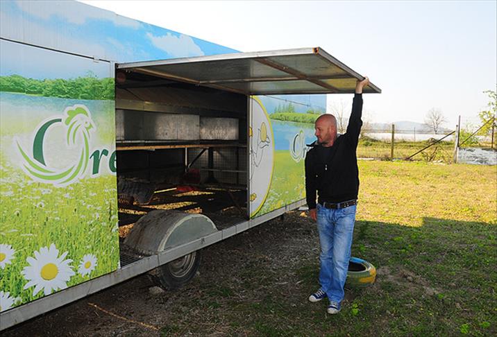Çiftliğine gelen vatandaşların "köy yumurtası" sorduğunu dile getiren Ece, bunun üzerine sanayiden topladığı parçalarla tavukların rahat edeceği şekilde dorse yaparak "seyyar kümes" oluşturduğunu bildirdi.