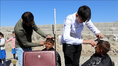 Bu kapsamda çetin kış mevsiminin yaşandığı bugünlerde il ve ilçe merkezine gidemeyen çocukları eğitim gördükleri köy okullarında ziyaret etmeye başlayan gönüllüler, canlı müzik eşliğinde öğrencileri ücretsiz tıraş ediyor.