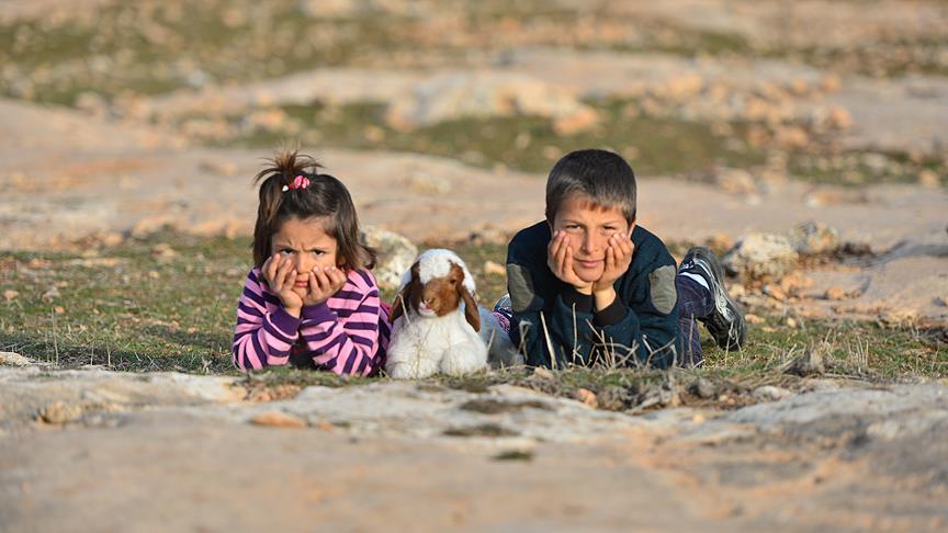 Şanlıurfa'da besicilik yaparak geçimlerini sağlayan ailelerin çocukları, kuzularla oynayarak eğlenceli vakit geçirmeye çalışıyor.