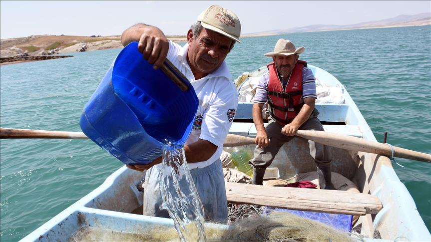 Ağına düşen balıkları toplamak için ertesi gün erken saatlerde teknesiyle yeniden baraja açılan Devim, yakaladığı levrek, yayın ve alabalıkları Yamula Su Ürünleri Kooperatifine satarak geçimini sağlıyor.