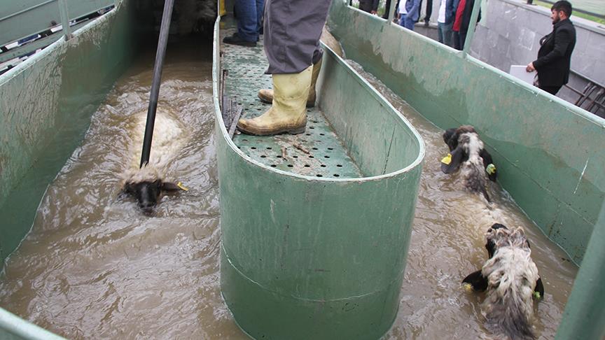Konuşmaların ardından koyunlar "mobil koyun banyolukları"nda dezenfekte edildi.