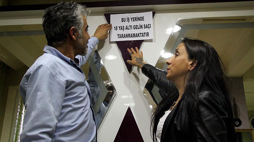 Van'da, çocuk yaşta evlilikleri önlemek için kentteki kuaför salonlarına, "Bu iş yerinde 18 yaş altı gelin saçı taranmamaktadır." yazılı afişler asıldı.