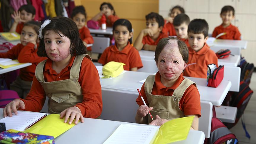 Suriye'deki savaşın mağdurlarından 8 yaşındaki Hibe Mekzum, fiziksel görünümündeki farklılığa karşın Hasan Paşa İlkokulu'nda kendisini sevgiyle kabullenen sınıf arkadaşları ve öğretmenin desteğiyle okula gidiyor.