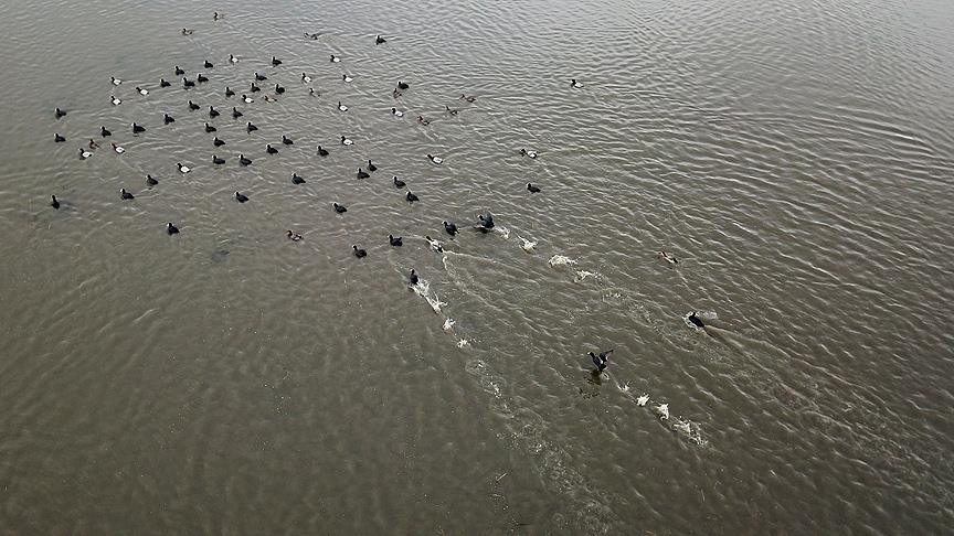 Sakarmeke, angut, yeşilbaşlı ördek ve sığırcıkların döndüğü göl, cıvıl cıvıl bir görünüme kavuştu. AA ekibince drone ile havadan görüntülenen Kuyucuk Gölü'ndeki kuşlar, renkli görüntüler oluşturdu.