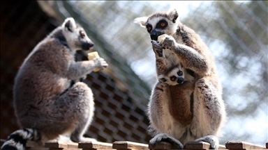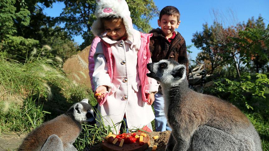 Bursa'da, Büyükşehir Belediyesi Hayvanat Bahçesi'nde nesli tükenmekte olan hayvanlar grubunda bulunan lemurlara dikkati çekmek için meyveli pasta ikram edildi.