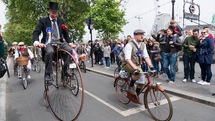 18. yüzyıl Britanyasında yaygın olarak kullanılan tüvit kumaştan üretilmiş, ceket, kravat, yelek ve kep giyen sürücüler, güzergahları çerçevesinde ünlü "London Eye" dönme dolabı civarı ve parlamento binasının yanında bulunduğu Westminster Bridge'den geçti.