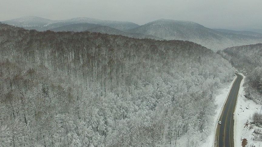 Yaklaşık 2 bin 500 dönüm büyüklüğünde içerisinde 4 gölün yer aldığı, yürüyüş parkurları, hayvan popülasyonu ve doğal güzellikleriyle ilgi çeken ormanın bir kısmı kar yağışı nedeniyle beyaza büründü.