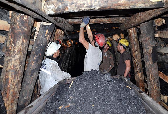 Madencilerden Yavuz Çolakoğlu (25), AA muhabirine, yerin altındaki mesaileri süresince üretim alanlarında oluşan boşlukların çökmemesi için maden direklerini baltayla keserek tahkimat yaptığını söyledi.