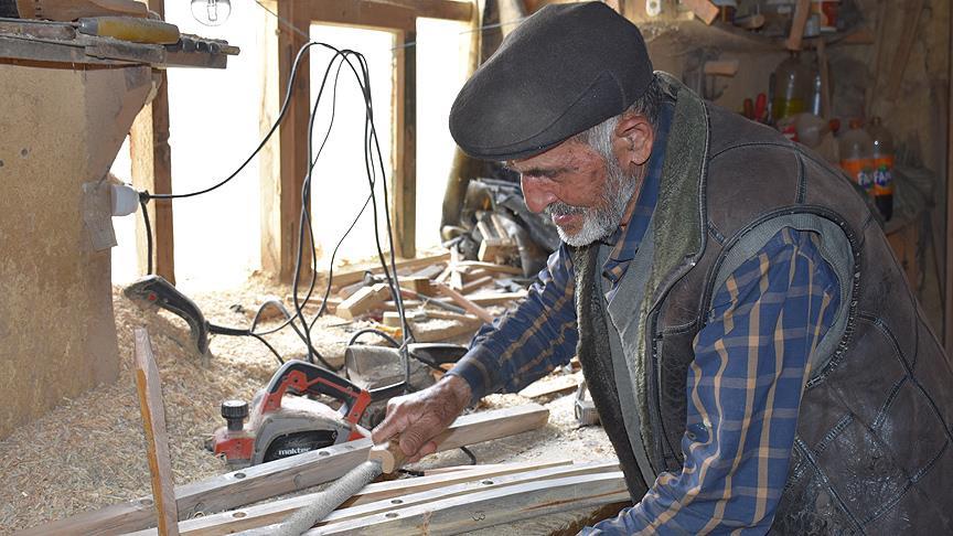 Afyonkarahisar'ın Bayat ilçesine bağlı Mallıca köyündeki evinde tek başına yaşayan 82 yaşındaki Mahmut Ovalı, 70 yaşına kadar inşaatlarda sıvacılık yaparak ailesini geçindirdi. Daha sonra bahçesine derme çatma bir atölye kuran Ovalı, 12 yıldır da ahşabı işleyerek evine ekmek götürüyor.