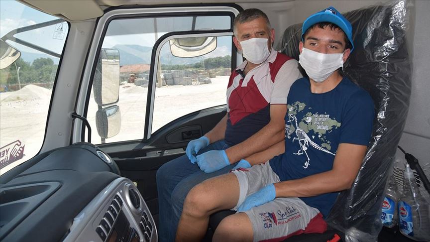 Belediye ekipleri, Burak ve babasını evinden alarak belediye şantiyesinde çöp kamyonuna bindirerek gezdirdi.