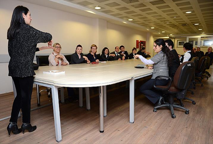İlk derste işaret dili alfabesini öğrenen personel, ikinci derste cümle kurmaya başladı. Öztürk'ün sorularını işaret dilinde yanıtlayan personel, günlük yaşamda en çok ihtiyaç duyulan konuları işaret diliyle anlatıyor. Personel, derslerden sonra da kendi arasında işaret diliyle konuşma alıştırmaları yapıyor.