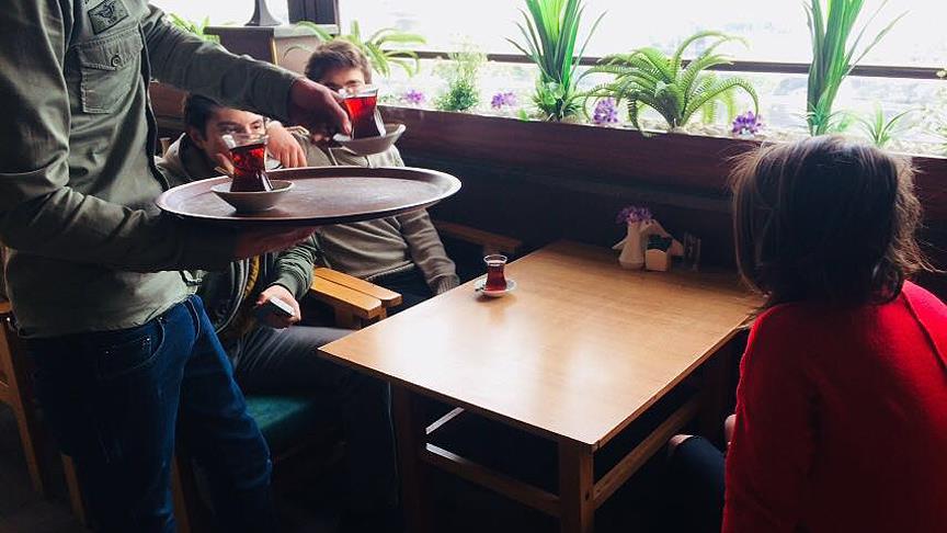 Afiş ve pankartlarla donatılan kafeye gelenler, ödeme yaptıkları sırada içtikleri 3 çayın parasının Mehmetçik'e gönderileceğini duyduğunda şaşkınlığını ve mutluluğunu gizleyemiyor.