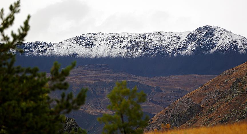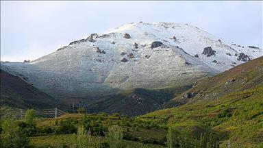 Dağın zirvesi, mevsimin ilk kar yağışıyla beyaza büründü.