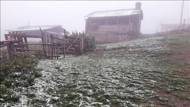 Erzincan'da 2 gündür etkili olan yağmur, gece itibarıyla 3 bin 549 rakımlı Esence Dağı'nda hava sıcaklığının giderek düşmesiyle kara dönüştü.