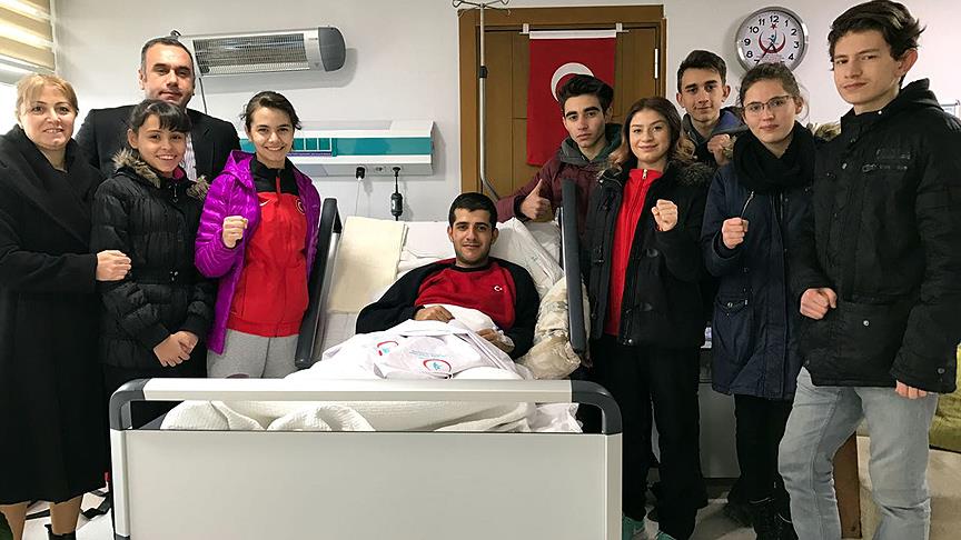 Eskişehir'de milli takım forması giyen tekvandocular, Fırat Kalkanı Harekatı kapsamında El Bab bölgesinde yaralanan Piyade Komando Teğmen Levent Fevzi Göztaşı'nı tedavi gördüğü hastanede ziyaret etti.