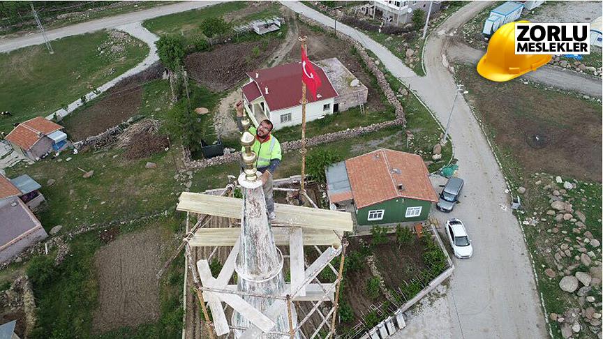 Minarenin dökülen boyası, külahının tamiri için metrelerce yükseğe çıkıp işlerini en iyi şekilde yapmaya çalışan minare ustalarının sayısı ise gün geçtikçe azalıyor.