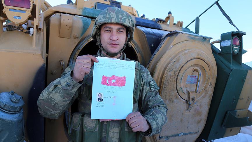 Terör örgütü PKK'ya yönelik operasyonların yoğun şekilde devam ettiği Şırnak'ta Irak sınırına hakim tepelere konuşlu askeri üs bölgesinde vatani görevini yapan askerler, Kocaeli ve Bursa'daki ilkokul ve anasınıfı öğrencilerinin gönderdiği sevgi dolu mektup ve şiirleri okuyunca duygu dolu anlar yaşadı.