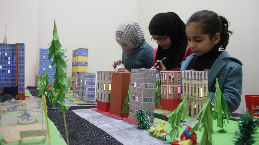 Suriye'deki iç savaşın getirdiği travmaları Gaziantep Büyükşehir Belediyesince kurulan Ensar Toplum Merkezindeki eğitimlerle atlatmaya çalışan 25 çocuk, hayallerindeki ülkelerini kağıt ve oyun hamurlarıyla yaptıkları makette ortaya koydu.