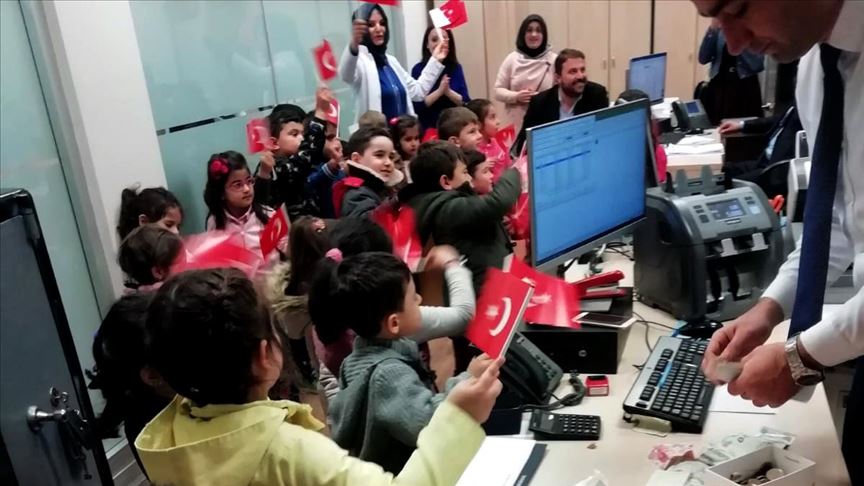 Minik öğrencilerin, biriktirdikleri paraları bankadaki görevlilere bizzat kendilerinin teslim ettiğini vurgulayan Çetinkaya, şunları kaydetti: