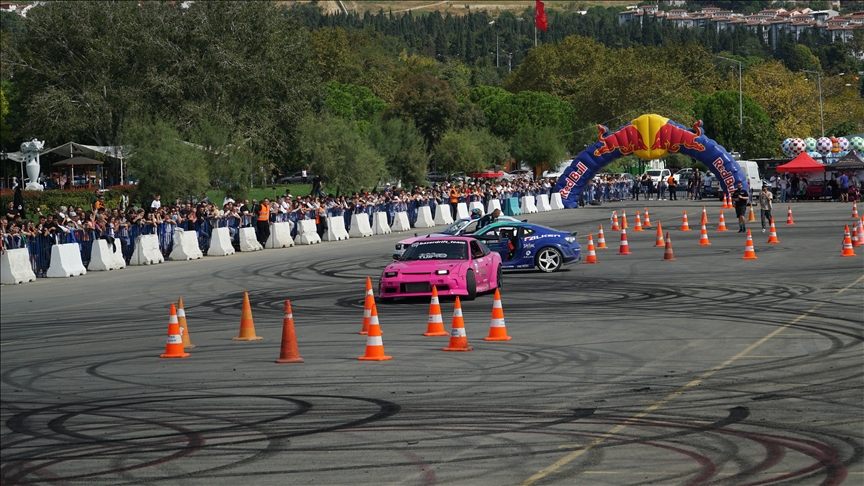 Etkinliğe katılan araç sürücüleri tarafından zaman zaman drift gösterisi yapıldı.