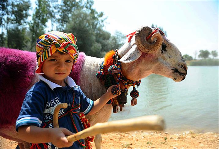 Çal ilçesine bağlı Aşağıseyit köyünde 8 asırdır süren "Sudan Koyun Geçirme Yarışması"na katılacak çobanlar, koyunların süsleme işlemlerini tamamlayarak yarışma gününü beklemeye başladı.