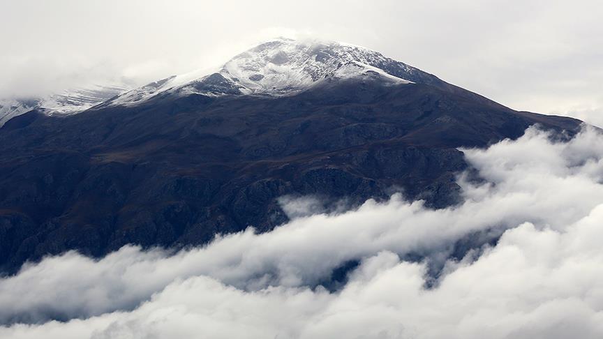Erzincan'ın, Tunceli sınırında yer alan 3 bin 463 metre yüksekliğindeki Munzur Dağı zirvesi, kar yağışıyla birlikte beyaza büründü. Dağın sis bulutlarıyla bütünleşmesi güzel görüntüler oluşturdu.