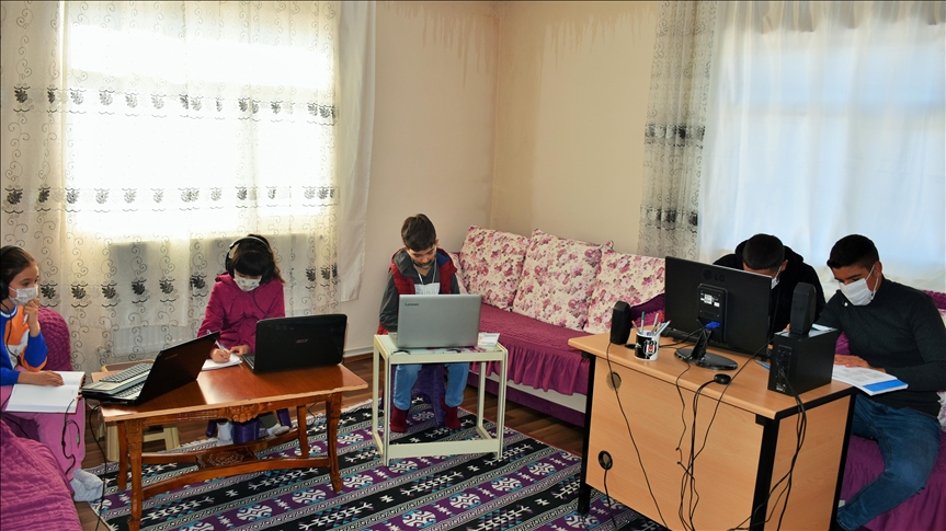 Milli Eğitim Müdürlüğünün gönderdiği 4 bilgisayarı evinin bir odasına kurduğunu anlatan Kaya, Kovid-19 önlemleri kapsamında öğrencilerin ateşlerini ölçüp ellerini dezenfekte ettiğini aktardı.