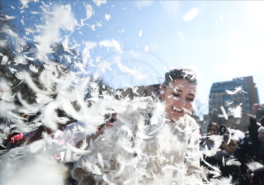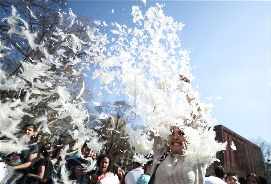 Her sene nisan ayında yapılan "Uluslararası Yastık Savaşı Günü" bu sene de New York'ta renkli görüntülere sahne oldu.