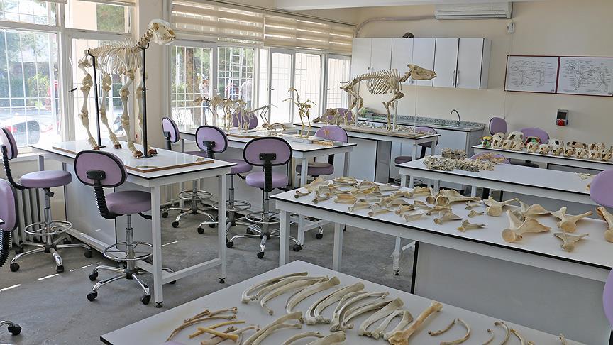 Öğrencilerin buldukları buzağı, eşek, domuz, kedi, köpek ve bıldırcın gibi hayvanlara ait kemikleri birleştirerek oluşturdukları 15 iskelet ile yüzlerce kemiğin inceleme amaçlı yer aldığı laboratuvar, veteriner eğitimine önemli katkılar sunuyor.