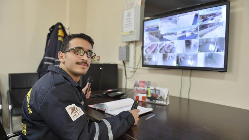 Mardin'de Büyükşehir Belediyesi İtfaiye Daire Başkanlığında görev yapan doğuştan Serebral Palsi hastası Aslan Olgaç (20) telefonla gelen ihbarları alıyor, babası da can kurtarıyor.