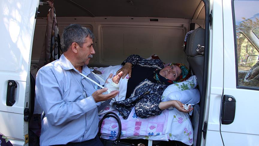 Anne Makbule, düğünü minibüse yerleştirilen yatakta izledi. Damat ile gelin, anne ve ablanın elini öptükten sonra ilk dansını gerçekleştirdi.