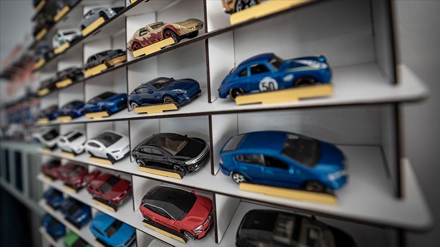 Koleksiyonun sergilediği vitrinleri kilitlediklerini belirten Köseoğlu, "Oğlumla 3-5 arabayla başladığım hobi şu an için çeşitli ölçeklerde 350'yi aşkın modelle koleksiyon oluşturuyor." dedi.