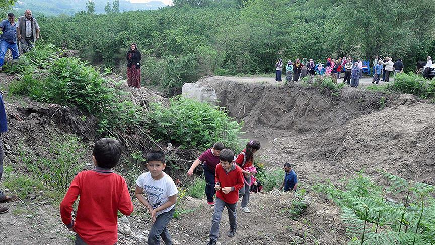 Mahallede bulunan öğrenciler ise ebeveynlerinin yardımıyla dere yatağından ve toprak yığınları arasından geçerek öğrenci servislerine ulaşıyor.