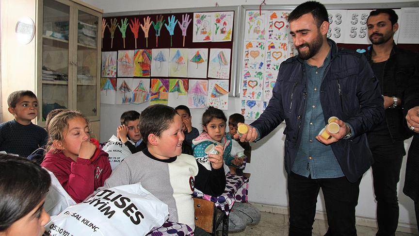 Muş'ta AK Gençlik Grubu üyeleri, köy okullarındaki öğrenciler için sosyal medya üzerinden başlattıkları kampanya ile çeşitli yardım malzemesi topladı.