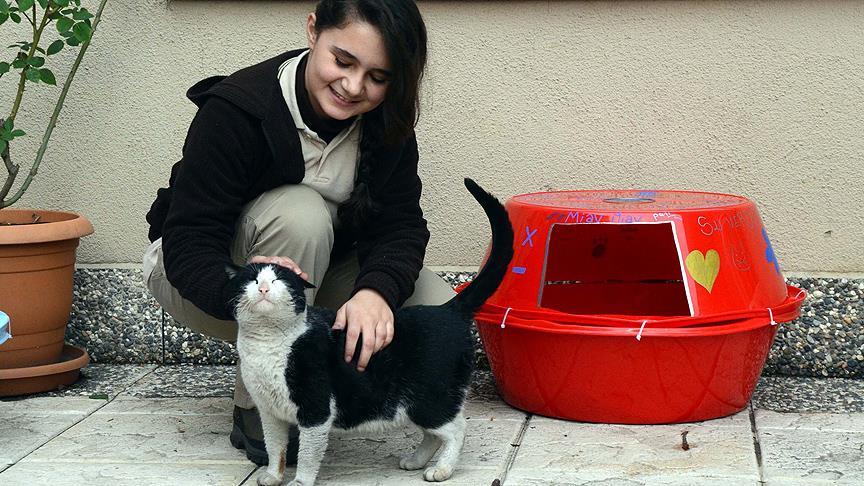 Bu çalışmayla imkanları ölçüsünde kedilerin barınması için çözüm bulan öğrenciler, okul yemekhanesinden artan yemekleri de yuvalara bırakarak beslenmelerine yardımcı oluyor.