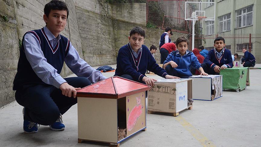 Öğrencilerden sokak hayvanlarına sıcak yuva
