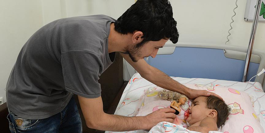 Ağır yaralanan ve Suriye'deki bir hastanedeki ilk müdahalenin ardından Türkiye'ye getirilen 2 yaşındaki Mamia, Kilis Devlet Hastanesinde tedavi altına alındı.