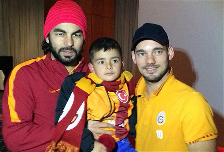 Özellikle Wesley Sneijder ve Selçuk İnan'ın kucağına alıp yakından ilgilendiği Ömer Asaf'ı bütün futbolcular öptü.