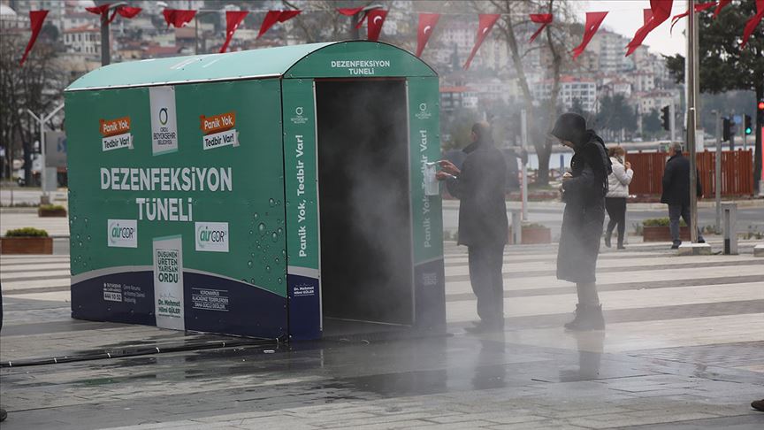 Ordu Büyükşehir Belediyesinden yapılan yazılı açıklamada, bugünlerde dışarı çıkmak ve işe gitmek zorunda olan vatandaşların kıyafetleri üzerinde oluşan zararlıların dezenfekte edilmesi amacıyla tamamen yerli ve milli imkanlarla "Aircor52 Dezenfekte Tüneli" tasarlandığı belirtildi.