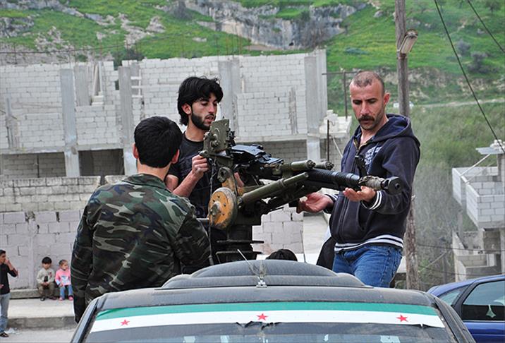 AA muhabirinin görüntülediği, kentin en yüksek tepelerinde mevzilenen ÖSO askerleri, ele geçirdikleri uçaksavarla gelebilecek her türlü tehlikeye karşı 24 saat nöbet tutuyor.