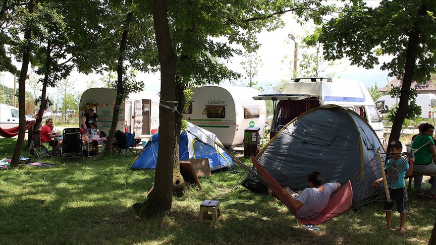 Kocaeli'nin Kartepe ilçesindeki doğal yaşam parkı Ormanya'da bulunan karavan ve çadır kamp alanı, yabancı turistleri ağırlıyor.