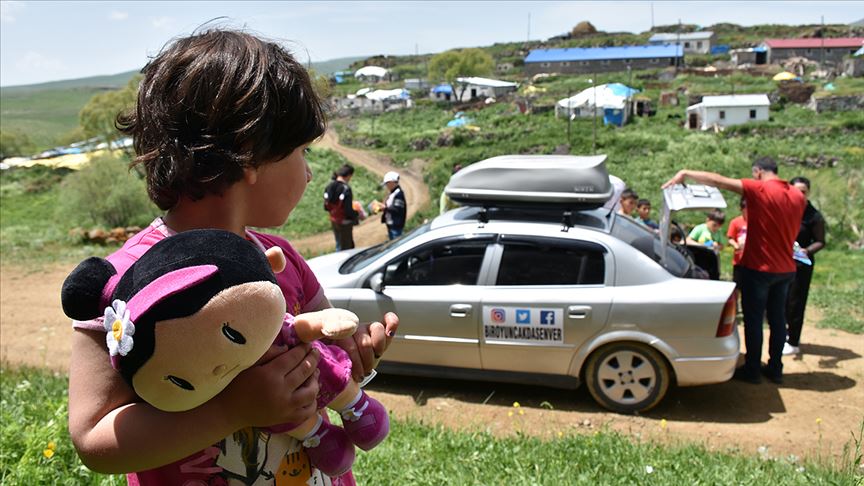 Kars'ta bir grup gönüllü, "Bir oyuncak da sen ver" sloganıyla sosyal medya üzerinden yürüttükleri kampanya ile köy köy gezip oyuncağı olmayan çocuklara oyuncak dağıtarak yüzlerini güldürüyor.