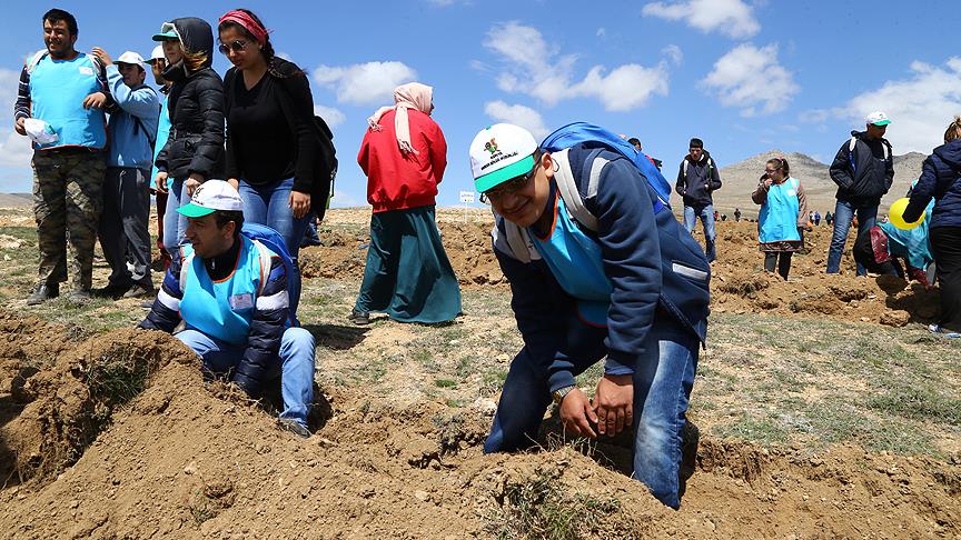 Konya'da özel eğitim alan 400 engelli öğrenci, 800 fidanı toprakla buluşturdu.