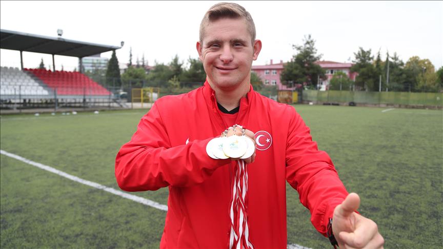 Samsun'da Canik Belediyespor sporcusu 20 yaşındaki down sendromlu Ali Topaloğlu, sosyalleşmesi için başladığı sporda, katıldığı tüm uluslararası şampiyonalarda altın madalya elde etti.