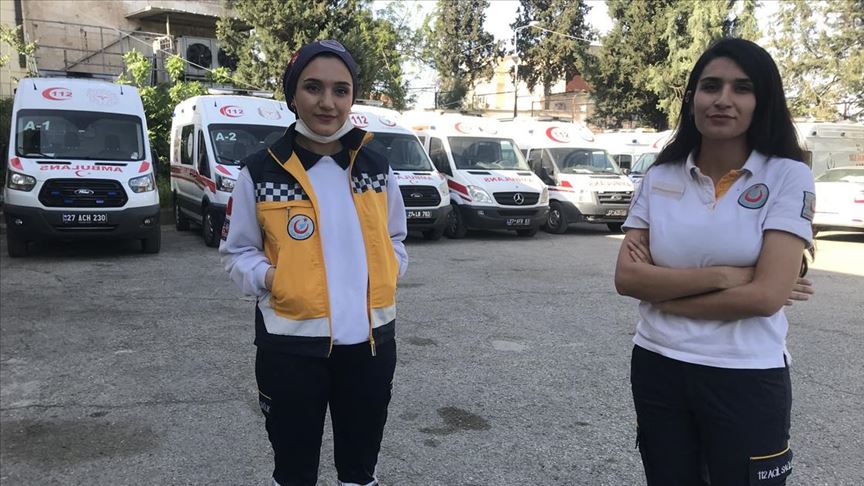 Gaziantep Acil Sağlık Hizmetleri İstasyonu'nda paramedik olarak görev yapan Sibel ve Gülşah Arslanhan kardeşler, koronavisle mücadelede en ön safta yer alıyor.