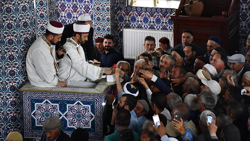 Doğubayazıt İlçe Müftüsü Adem Özdemir, AA muhabirine yaptığı açıklamada, vatandaşların Sakal-ı Şerif'e yoğun ilgisinin cami dışına taştığını söyledi.