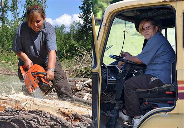 İşini severek yaptığını söyleyen Yaşar, kamyon, traktör, kepçe ve kesim motoru kullandığını, elleriyle kamyonlara tomruk yüklediğini belirtti.